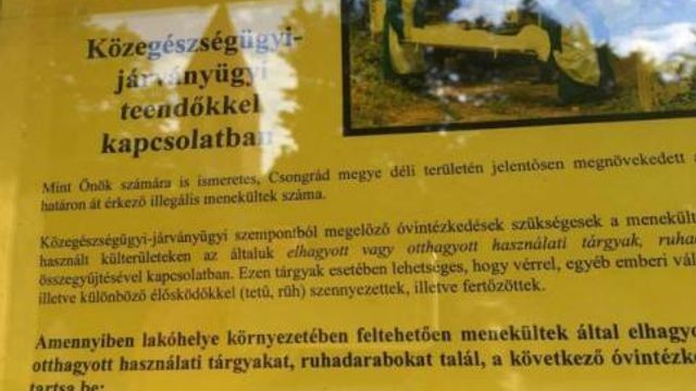 "I migranti portano malattie e rischiate di essere contagiati". L'avviso shock, un manifesto incollato alle stazioni dei bus, è comparso ad Asotthalom, al confine tra Ungheria e Serbia. A corredo, due foto: in una alcuni medici con protezioni anti-infezioni trasportano una persona morta; nell'altra un braccio devastato da piaghe. L'avviso è firmato dal Consiglio municipale, dove è al potere Jobbik, partito di ultradestra antisemita e anti Ue.