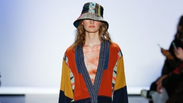 Infine BCBG Max Azria vira su un'espressione allegra, spiritosa e colorata. Anche qui il layering riveste un ruolo importante, ma è la maglia a rubare l'intera scena, lavorata finemente, riprende silhouette morbide.