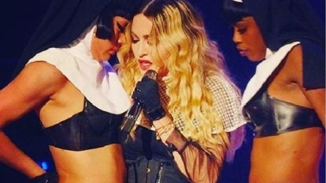 Tra croci in fiamme, ballerine travestite da monache che ballano la lapdance e una Madonna che sembra aver bevuto un elisir di lunga vita, è andato in scena al Madison Square Garden di New York il "Rebel Heart Tour". Con i suoi 57 anni portati da fare invidia a una teenager, la regina del pop si è calata all'interno di una gabbia su un palcoscenico a forma di croce che scorreva lungo la platea e che terminava con un cuore.