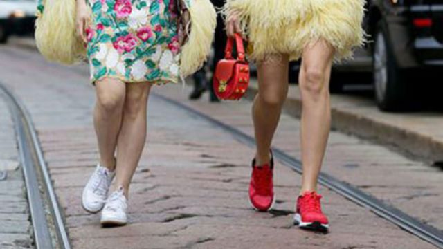 Potete abbinare le vostre sneakers con la gonna di pelle, la gonna plissé, con un abitino di piume: è questo il periodo in cui questo strano abbinamento non passa certo per fuori luogo. Approfittatene!