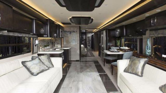 Definirlo camper è piuttosto riduttivo. L'ultimo nato in casa American Coach è più una vera e propria suite su otto ruote, dotata di tutti i comfort immaginabili. I numeri: in circa 14 metri trovano spazio due bagni, un soggiorno, una camera da letto, una cucina. E ancora tre televisori, due divani, lavatrice, lavastoviglie, frigorifero... Il costo? 700mila dollari, pari a circa 623mila euro. Ma attenzione: per guidare questo camper, ovviamente, non basta la patente normale.