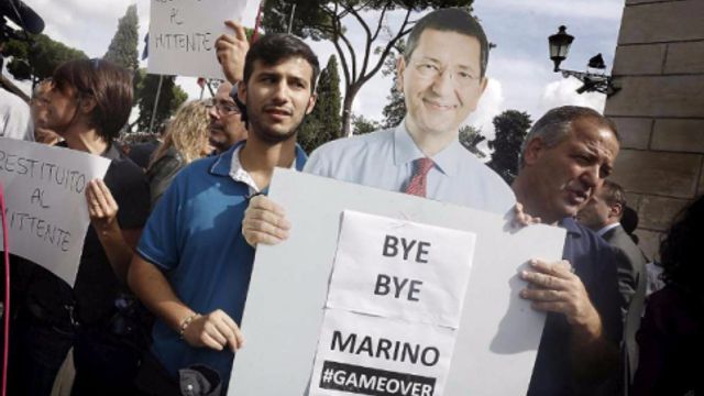 Festa delle opposizioni sotto il Campidoglio, a Roma, dopo la notizia delle dimissioni del sindaco di Roma, Ignazio Marino. "Dopo tanta miseria che la parola torni al più presto al popolo sovrano: elezioni il prima possibile", chiede il capogruppo di FI alla Camera, Renato Brunetta. "Sapremo se il Comune è libero solo dopo l'esito delle prossime elezioni comunali, sperando ci siano il prima possibile", gli fa eco il grillino Luigi di Maio.