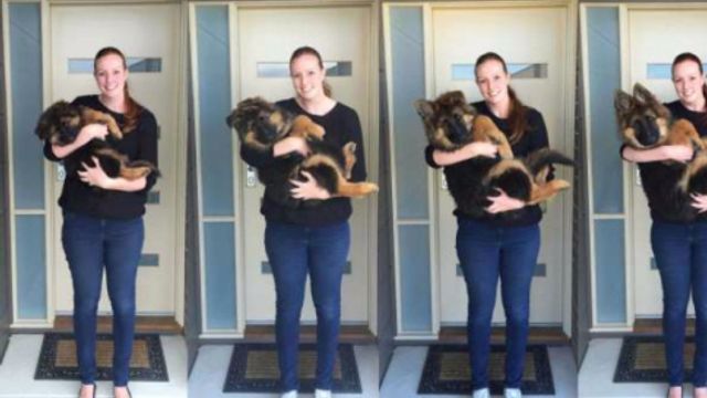 Una simpatica sequenza fotografica mostra l'incredibile crescita di un tenero "cucciolo" di pastore tedesco. Ashley Lewis, la padrona del cane, è orgogliosa. Il suo piccolo in soli 6 mesi è diventato un baby Hulk. Se a 8 settimane riusciva a stare in una mano, ora è grande quasi quanto la proprietaria.