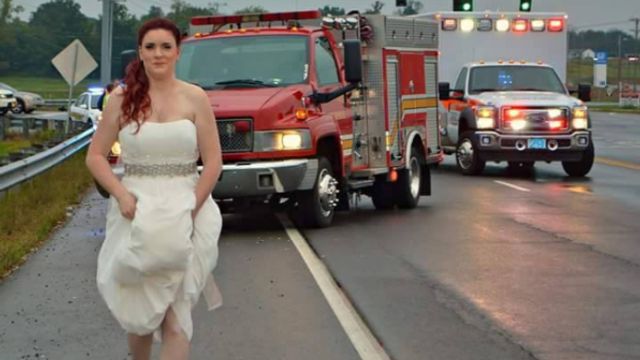 Scatto virale - Il gesto eroico è testimoniato da una fotografia, scattata dalla madre della sposa e postata sul profilo Facebook del "Montgomery County Emergency Medical Services". Un'immagine che ha già fatto il giro del mondo. in cui la si vede camminare per strada. Con l'abito raccolto alle ginocchia, le ballerine ai piedi e un camion dei pompieri alle spalle.