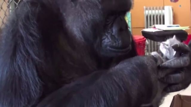 Un regalo dell'istruttrice, Francine Patterson, in occasione del 44esimo compleanno del gorilla. Che ha perso alla testa alla vista dei due micetti e ha deciso di adottarli. La conferma arriva direttamente alla fine del filmato, pubblicato dalla "Gorilla Foundation". C'è Koko che culla i due gatti e, attraverso i segni, afferma che sono i suoi bambini.