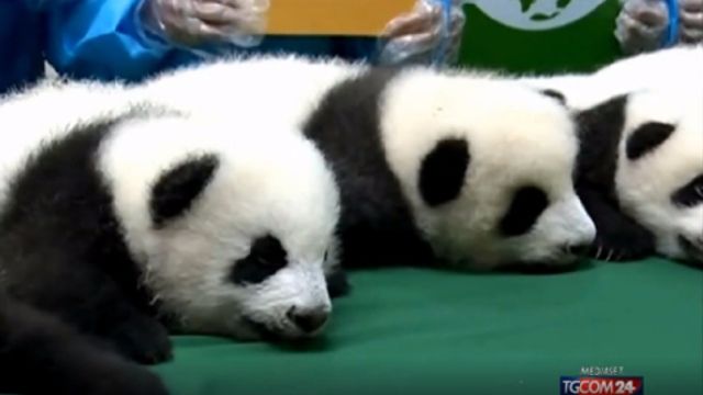 Prima uscita pubblica per sei coppie di gemelli di panda giganti, nate nel 2015 al Research Base of Giant Panda Breeding a Chengdu, nella provincia cinese del Sichuan. I cuccioli, mostrati al pubblico in occasione del raggiungimento del terzo mese, hanno scatenato la curiosità dei presenti che telefonini e macchine fotografiche alla mano hanno immortalato il momento. I piccoli hanno ricevuto le coccole dello staff del centro cinese.