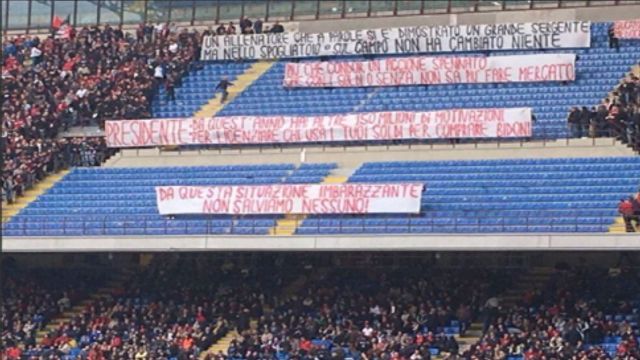 Nuova contestazione della Curva Sud prima di Milan-Sassuolo: gli ultras rossoneri hanno esposto alcuni striscioni di protesta mettendo tutti sotto accusa: "Da questa situazione imbarazzante non salviamo nessuno". Nel mirino dei tifosi soprattutto Galliani e Mihajlovic, gli striscioni contro l'a.d. sono due: "Più che condor un piccione spennato che con i soldi o senza non sa più fare mercato" e "Presidente: da quest'anno hai altre 150 milioni di motivazioni per licenziare chi usa i tuoi soldi per comprare bidoni". Riferimento alla frase detta alla vigilia da Berlusconi, presente a San Siro per la delicatissima sfida col Sassuolo e sceso negli spogliatoi per scuotere la squadra prima della gara. Non si salva nessuno, però. Ecco perché appaiono altri due striscioni: uno è "Giocatori mediocri", l'altro è per Mihajlovic: "Un allenatore che a parole si è dimostrato un grande sergente, ma nello spogliatoio e sul campo non ha cambiato niente".