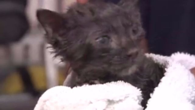 Prima una vigorosa lavata con il getto dell'autopompa per ripulirlo dai liquami, poi il morbido telo di spugna per asciugarlo e tornare come nuovo. Il gattino, tra le mani dei suoi salvatori, ha riacquistato la vita e il video dell'impresa fa il giro del Web.