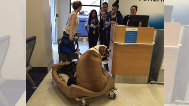 Comodamente accoccolato nella sua cuccia-letto munita di rotelle, Hank si è presentato così all'aeroporto internazionale di Los Angeles. E' stato accolto come una star, tra i tanti flash dei curiosi. E il cane obeso viaggia solo in prima classe. Trovato in un canile in California, Hank è stato adottato dall'interior designer Kari Whitman. L'animale è ingrassato a causa di un malattia e ora si muove solo a bordo della sua cuccia-letto.