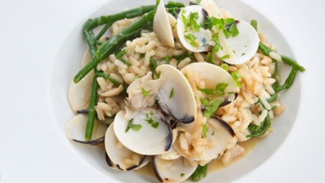 LA RICETTA: RISOTTO CON VONGOLE VERACI E SALICORNIA (gentilmente offerta da Aldelio di Osteria Pucci - Roma) In una padella preparare il soffritto per un chilo di vongole, con aglio, olio e peperoncino. Quando le vongole si sono aperte, sfumare con un bicchiere di vino bianco e infine aggiungere 300 grammi di salicornia. Far cuocere 400 grammi di riso, aggiungeteli al condimento e fate restringere ulteriormente il condimento. Dato che gli ingredienti di base sono piuttosto saporiti, fate attenzione all'utilizzo del sale nella cottura del riso. LA RICETTA PASSO PER PASSO.