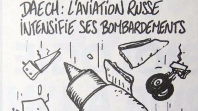 Una delle vignette contestate rappresenta pezzi del velivolo che precipitano su un jihadista mentre la didascalia recita "L'aviazione russa intensifica i bombardamenti". Un'altra raffigura un teschio sullo sfondo giallo del deserto con la carcassa dell’aereo in fiamme e resti umani. 'Avrei dovuto prendere Air Cocaine', recita la testa di morto, probabilmente facendo riferimento allo scandalo dei piloti francesi arrestati per narcotraffico nella Repubblica dominicana.