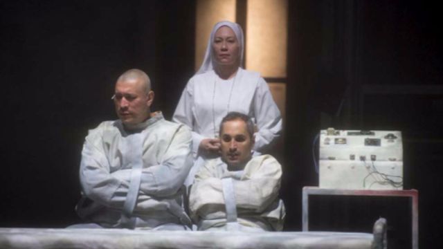 La carica umana dei personaggi e la loro caratterizzazione acquisiscono forza da primi piani cinematografici sul palcoscenico del teatro sul quale i sei malati, il loro nuovo amico finto pazzo e la suora, accompagnata da medico e inservienti, giganteggiano in una narrazione dai connotati claustrofobici. L'unica via d'uscita dalle quattro mura dell'ospedale è offerta proprio dagli escamotage delle videografie, gli effetti speciali in cui il palcoscenico diventa cinema in un turbinio di luci e colori al fine di evadere dal microcosmo entro cui si svolge la vicenda. Effetti che sono sempre legati a un solo personaggio, il gigante buono Ramon, finto sordomuto, l'unico destinato a salvarsi dalla dannazione incombente su tutti i personaggi.