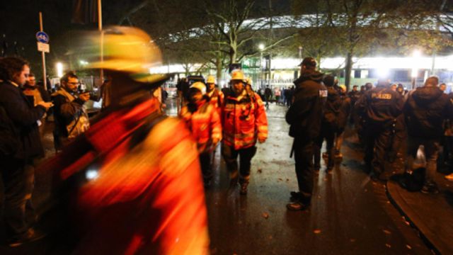 Intanto la partita era stata già annullata e lo stadio evacuato dopo che la polizia aveva annunciato di aver ricevuto "un allarme concreto di bomba allo stadio", mentre le stazioni di metropolitana del centro città sono state chiuse su richiesta della polizia. Le linee funzionano, ma solo nelle aree periferiche. Lo riferiscono media tedeschi.
