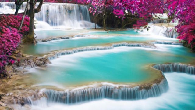 CASCATE KUANG SI – LAOS - Anche in questo caso non ci troviamo di fronte a cascate importanti per le loro dimensioni, quanto per la loro bellezza. Si tratta infatti di un sistema di vasche naturali nel Laos che generano spettacolari cascate molto suggestive.