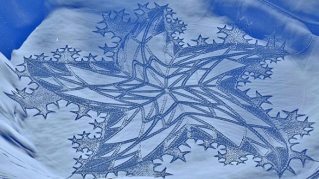 L'impressionante precisione delle forme geometriche ricorda quella dei celebri cerchi nel grano alieni, ma queste opere nella neve sono frutto del lavoro di un artista "terrestre": Simon Beck. Per l'artista britannico, una distesa di neve vergine è assimilabile ad una tela bianca, sulla quale si possono creare meravigliosi disegni.