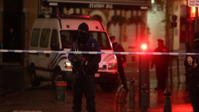 La polizia belga in assetto da guerra sta bloccando al transito l'area centrale del quartiere di Molenbeek, tra la Place Communale e la Chaussée de Gand. Mezzi delle forze dell'ordine impediscono l'accesso. Uomini con armi automatiche e passamontagna presidiano l'intera zona.