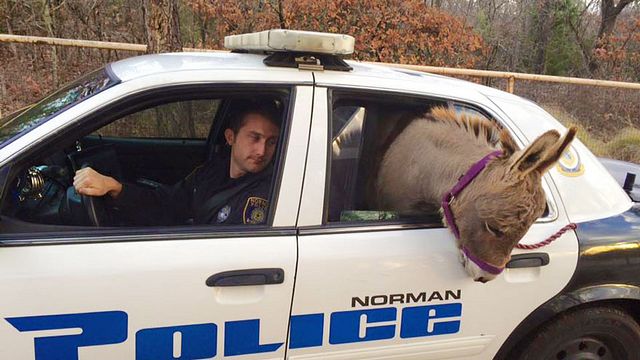 Singolare vicenda accaduta a Norman, in Oklahoma: un agente di polizia ha arrestato un asino. L'ufficiale Canaan è stato chiamato da alcuni cittadini che lamentavano la presenza di un asino a piede libero. Il poliziotto si è recato sul posto e ha catturato il quadrupede. Per portarlo in un posto sicuro ha deciso di usare l'auto di servizio. E la foto dell'asino dentro la macchina ha fatto il giro del web.