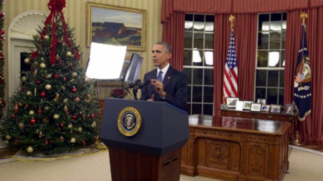 Isis diffonde il culto della morte - Nel denunciare lo Stato islamico "come il culto della morte", Obama ribadisce che "l'Isis non parla per l'Islam. Sono solo dei criminali e degli assassini e rappresentano una parte piccolissima dei musulmani", sottolineando come bisogna impedire a tutti i costi che questa lotta sia definita come una guerra tra l'America e l'Islam. Il presidente ha quindi sottolineato la necessità di respingere le proposte di chi vorrebbe che i musulmani americani fossero trattati diversamente o di chi vorrebbe i test religiosi per le persone che vengono accolte in Usa. E ancora: "Noi crediamo nella dignità umana. Non importa chi sei, da dove vieni, come appari o quale religione pratichi. Tutti sono uguali davanti agli occhi di Dio e davanti agli occhi della legge". Poi ha concluso: "Siamo dalla parte giusta della storia. E dobbiamo ricordare che la libertà è più forte della paura".