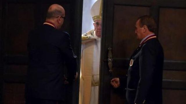 Papa Francesco ha spinto più volte le ante della Porta Santa prima che questa si aprisse: infine, il portone si è spalancato ed il Pontefice è stato il primo a varcarlo, seguito poco dopo dal Papa emerito Joseph Ratzinger, sorretto dal segretario mons. Georg Gaenswein.