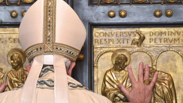 Allarga le braccia, spinge le ante che fanno un po' di resistenza e, quando si aprono, papa Francesco quasi irrompe dentro la basilica di San Pietro. Sorride titubante, e dalla piazza sale un applauso. Sono le 11.10 della festa dell'Immacolata quando Bergoglio, che indossa un mantello bianco ricamato sul davanti, apre la Porta Santa dando il via ufficiale al Giubileo della Misericordia da lui voluto. Subito prima, nell'atrio, ha salutato il Papa emerito Benedetto XVI, si sono abbracciati e hanno scambiato qualche parola.
