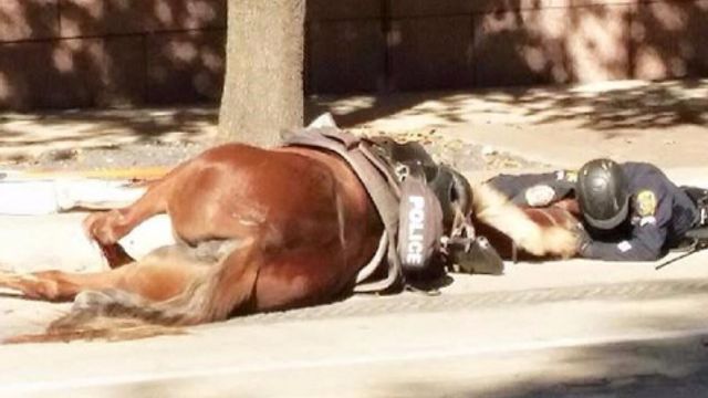 Un cavallo morente e il suo cavaliere che lo assiste fino all'ultimo respiro. Una foto presa con un cellulare che sta facendo il giro del web diventando subito virale. La protagonista è Charlotte, una cavalla di sei anni in servizio per la polizia di Houston. Ha perso la vita durante un pattugliamento, spaventata dal rombo di una moto si è imbizzarrita ed è stata investita da un camion.