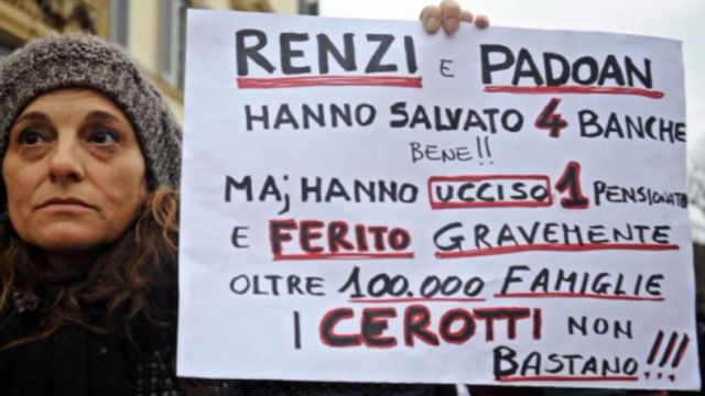 Dopo la vicenda degli obbligazionisti finiti sul lastrico in seguito al fallimento delle quattro banche, il direttore generale di Banca d'Italia Salvatore Rossi dice che "è necessario vietare la vendita di prodotti come le obbligazioni subordinate allo sportello". E spiega che "per Banca Etruria, come per altre banche, è stato impossibile trovare una soluzione di mercato" a causa dei "problemi di crediti deteriorati".