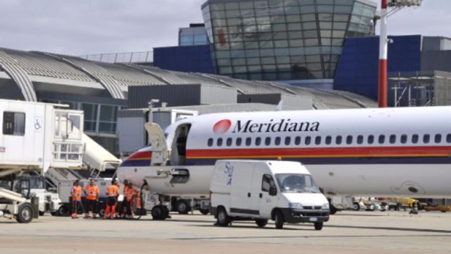 L'incidente è avvenuto all'aereo Meridiana decollato da Catania alle 09.28 e diretto a Milano Linate. Nella fase di decollo dall'aeromobile si è staccata una ruota esterna posteriore che è caduta sulla spiaggia di sabbia della Plaia, che d'estate è affollatissima, senza procurare danni.