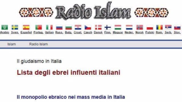 La procura di Roma ha chiesto al gip l'oscuramento del sito web Radio Islam su cui campeggia una lista di personalità di religione ebraica tra cui imprenditori, intellettuali e giornalisti. Della vicenda è stata incaricata la polizia postale al fine di risalire ai gestori del portale. L'indagine, al momento contro ignoti, ipotizza i reati di minaccia e di diffamazione, con l'aggravante dell'odio razziale.