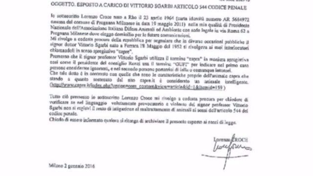 L'Aidaa, nella persona del suo presidente nazionale Lorenzo Croce, nell'esposto chiede alla Procura di verificare se l'uso spregiativo del termine "capra", che, a suo avviso, il critico usa a sproposito, non sia "un incitamento al maltrattamento di animali, oltre che un uso scorretto della lingua italiana", anche perché "la capra è tra gli animali più intelligenti che esistano".