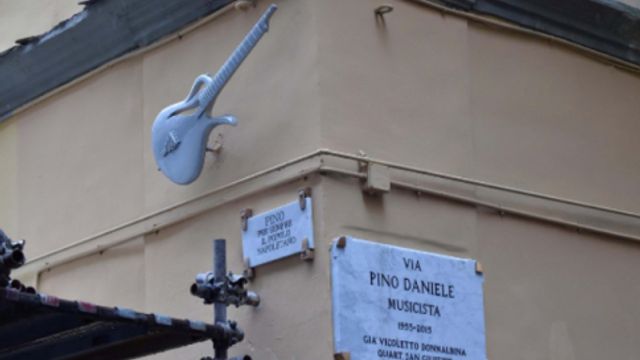Una chitarra per ricordare Pino Daniele. Tra le iniziative organizzate a Napoli in memoria dell'artista scomparso il 4 gennaio 2015, c'è la posa di un monumento nella via intitolata al musicista, che è vicina alla casa natale sita in via santa Maria la Nova. La riproduzione della chitarra è stata installata sulla facciata di un palazzo all'angolo della strada, già diventata meta di pellegrinaggi da parte dei fan.