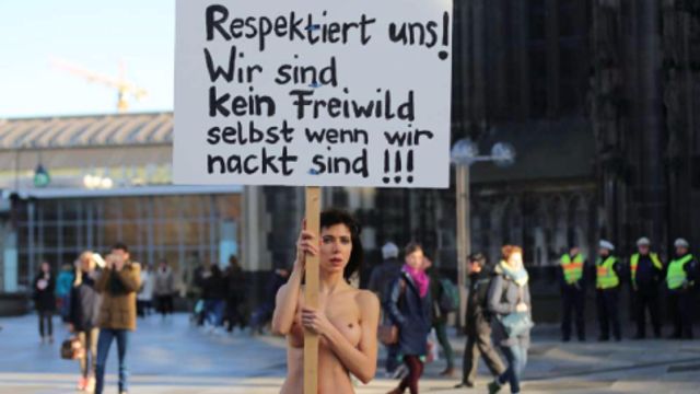 Per protestare contro l'ondata di violenze e furti nei confronti di un centinaio di donne avvenuta a Capodanno a Colonia, la svizzera Milo Moiré ha deciso di sfilare nuda di fronte al duomo della città tedesca. L'artista 32enne ha espresso solidarietà per le donne "vestita" soltanto di scarpe e un cartello recante la scritta: "Rispettateci! Non siamo prede libere nemmeno se siamo nude". La polizia ha identificato 31 responsabili, 18 dei quali sono profughi richiedenti asilo.