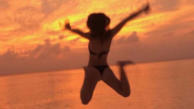 In vacanza con papà. Dopo che mamma Michelle Hunziker ha dichiarato che le piacerebbe diventare presto nonna e che sarebbe bello restare incinta insieme alla figlia Aurora, la Ramazzotti si prende una pausa di riflessione e vola in vacanza con Eros. Un salto in bikini sulla spiaggia al tramonto e tanto divertimento per padre e figlia.