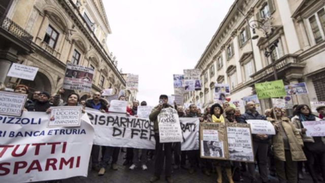 Tanti slogan contro il governo, Bankitalia e la Consob. I risparmiatori rimasti intrappolati dal fallimento delle quattro banche sono scesi di nuovo in piazza a Roma in una manifestazione organizzata dal Comitato vittime del decreto salva-banche per chiedere garanzie sui rimborsi. Oltre un centinaio di persone hanno aderito al sit-in per chiedere di riavere i loro soldi. Molti i cartelli contro Palazzo Koch, accusato di non aver vigilato.