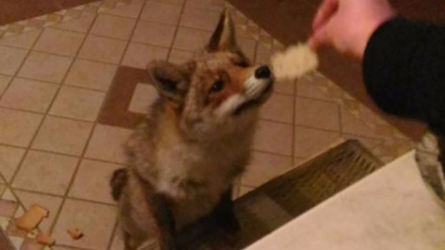 Puntuale come un orologio, questo esemplare di volpe si presenta ogni sera al pub per uno spuntino. Succede a Ovindoli, in provincia de L'Aquila e per i titolari del locale è ormai una piacevole consuetudine. "Fino a qualche giorno fa mangiava di nascosto - racconta Giorgia Pietrantoni ad Abruzzoweb -. L'altra sera, invece, si è fatta trovare davanti all'ingresso di casa. Le abbiamo offerto pane con il sugo e fette biscottate. E non ha certo fatto i complimenti...".