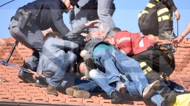 "E' stato un momento di forte tensione, sul tetto con i piedi sulle tegole che scivolavano, ho visto che non ascoltava più, farfugliava e si penzolava e ho deciso, gli sono saltato addosso placcandolo, ma anche rischiando di rotolare giù con lui". Lo afferma il vice questore di Sanremo, Lorenzo Manso, che con i suoi uomini è riuscito a fermare un uomo che stava per compiere un gesto inconsulto lanciandosi dal tetto del palazzo dinanzi al Teatro Ariston. "Si è divincolato - ha raccontato Manso -, ha scalciato ma, con l'aiuto dei miei uomini l'abbiamo portato in salvo".