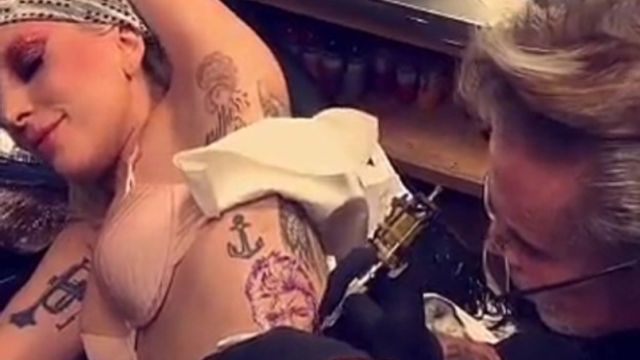 Commentando il suo nuovo tatuaggio, la camaleontica diva ha scritto: "Questa è l'immagine che ha cambiato la mia vita". L'opera è stata realizzata da Mark Mahoney presso lo studio Shamrock Social Club di West Hollywood.