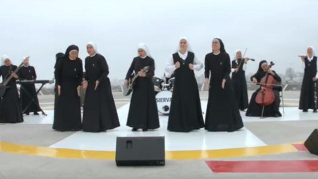 La band delle suore arriva dal Perù. "Abbiamo pubblicato il nostro video online pochi mesi fa e non potevamo immaginare che sarebbe diventato così popolare", dice la leader del gruppo, suor Monica, alla Cnn. "Un sacerdote messicano lo ha visto e ha inviato un messaggio, 'Venite in Messico,' così abbiamo fatto", aggiunge.