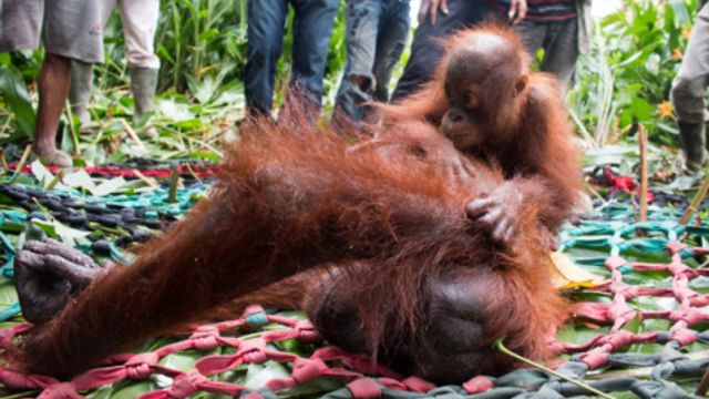 Madre e cucciolo sono stati portati nel centro di riabilitazione per oranghi di Ketapang. Un'impresa solo apparentemente facile: nonostante la debolezza, per far scendere Nam, agguerritissima nel difendere il suo piccolo, dall'albero a cui era aggrappata sono stati necessari 3 dosi di sonnifero.