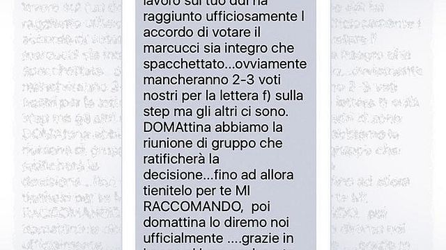 L'sms inviato dal senatore del M5S, Alberto Airola, a Monica Cirinnà, in cui preannunciava l'orientamento degli M5s a votare sì all'emendamento canguro, "non era la posizione ufficiale e definitiva del Movimento". A precisarlo lo stesso senatore Airola dopo le polemiche suscitate dalla pubblicazione del messaggio.