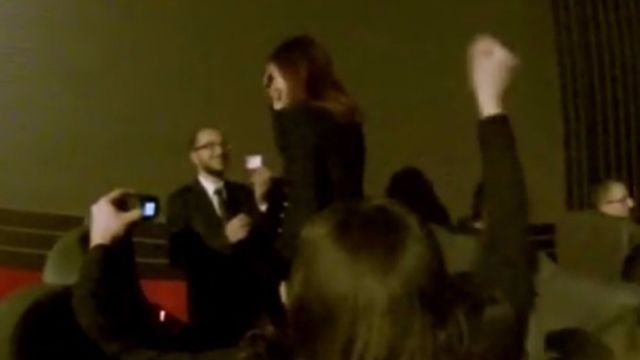 Come in sogno, all'improvviso, sul grande schermo del cinema, appare lui, il principe azzurro, che in carne e ossa ti chiede la mano. E' andata più o meno così a Nunzia, 25enne di Matera, che ha visto stravolto un normale sabato sera organizzato per vedere un film con il suo fidanzato, Vincenzo Iacovone, 28 anni, "per colpa" di quest'ultimo. "Volevo fare qualcosa di grande - racconta a Tgcom24 Vincenzo, autore della bizzarra proposta di matrimonio, unica in Italia, andata in scena all'interno del multisala "Red Carpet" di Matera, - perché mi piace stupire la mia ragazza. E ci sono riuscito: ci sposiamo tra due anni".