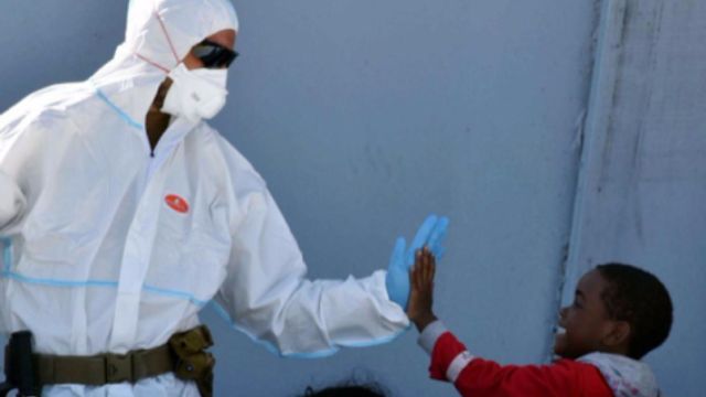 C'è un piccolo raggio di sole nel tragico sbarco al porto di Augusta (Siracusa) di una nave della Marina Militare, la "Cigala Fulgosi", a bordo della quale si trovavano 550 migranti, tra i quali 83 donne e 32 minori, soccorsi nel Canale di Sicilia, dopo una traversata costata la vita a 5 persone. E' poco dopo l'arrivo nel porto infatti che uno dei bambini incontra uno dei suoi salvatori: è bastato qualche sguardo complicie ed ecco che fra i due è scattato un universale "dammi il cinque".