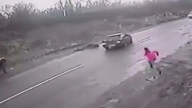 Si vedono volare e ricadere sull'asfalto come birilli e, solo per miracolo, uscire illesi da un investimento stradale che poteva avere risvolti tragici. E' la storia a lieto fine immortalata dalle telecamere di sorveglianza di una strada ucraina, nella regione della Transcarpazia: protagonisti un bimbo di 4 anni e il suo salvatore, un ambulante di frutta e verdura. Il piccolo è sfuggito al controllo dei suoi genitori che si erano fermati a fare la spesa lungo la strada e, all'improvviso, si è lanciato in mezzo alla carreggiata mentre sopraggiungevano a velocità sostenuta diverse automobili. Solo i riflessi dell'ambulante-eroe gli hanno salvato la vita.