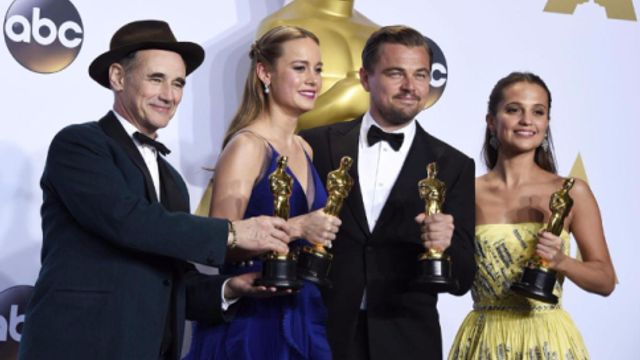 © ansa|Gli attori premiati: Mark Rylance, Brie Larson, Leonardo DiCaprio e Alicia Vikander