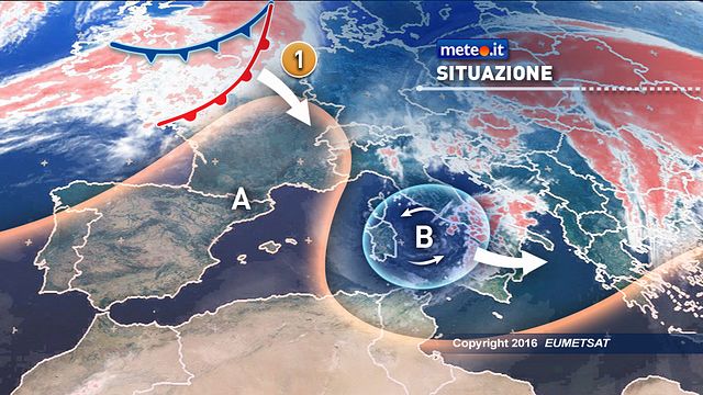 L'intenso vortice ciclonico formatosi sul Mediterraneo settentrionale si muoverà lentamente in direzione del basso Tirreno, indebolendosi gradualmente. La massa d'aria umida e instabile in rotazione attorno al minimo di pressione determinerà ancora delle piogge soprattutto sulle regioni meridionali, in attenuazione nella giornata di mercoledì.