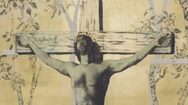 Un Cristo con la faccia da ultrà. Sulla parete centrale della chiesa dell'ospedale San Giovanni XXIII di Bergamo, sacro e profano si mischiano e diventano arte nell'opera di Andrea Mastrovito, tifoso dell'Atalanta che nella curva della Dea è conosciuto come 'Giotto'. Il 37enne, artista emergente quotato in Italia come all'estero, ha dato al Cristo il volto del Bocia, al secolo Claudio Galimberti, storico capo degli ultras nerazzurri, colpito da Daspo e a processo per associazione a delinquere. Come prevedibile, in città è scoppiata la polemica.
