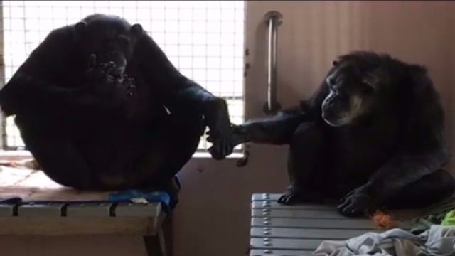 Chi trova un amico trova un tesoro. Lo sanno bene Terry e Jeannie, i due scimpanzè che si sono conosciuti grazie all'organizzazione no profit Save the Chimps. In un video i due animali sono ripresi mentre si tengono per mano e non si lasciano più, neanche quando mangiano o dormono: semplicemente cambiano la mano, assicurandosi di non perdere mai il contatto.