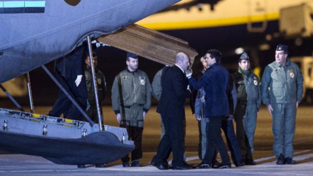 Il C-130 dell'Aeronautica con a bordo le salme di Salvatore Failla e Fausto Piano è atterrato all'aeroporto militare di Ciampino. L'aereo era partito da Tripoli. Ad accoglierle i familiari dei due tecnici della Bonatti, rapiti e uccisi in Libia, e il ministro degli Esteri Paolo Gentiloni.