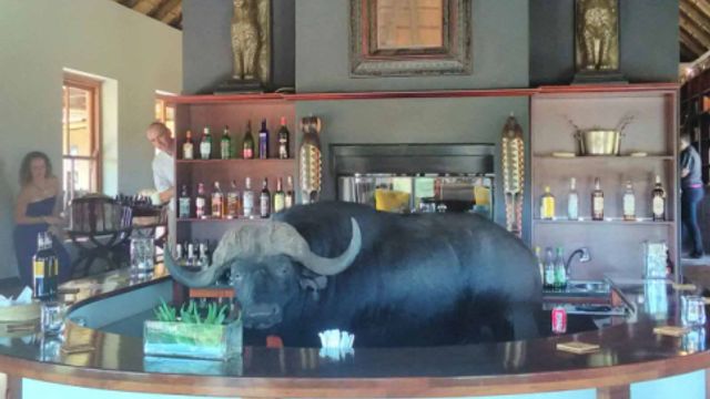 Sorpresa inaspettata per i clienti del Hlosi Game Lodge di Paterson, in Sudafrica, che si sono trovati dietro al bancone del bar un "cameriere" di una certa stazza. Come si vede dalle foto pubblicate sui social, infatti, un bufalo si è improvvisato barman.