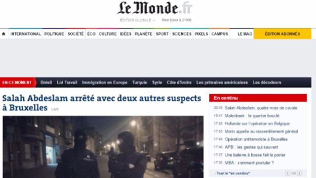 Da "Le Monde" a "Le Figaro" fino alle testate del Belgio. Il blitz di Molenbeek che ha portato all'arresto di Salah Abdeslam, la mente delle stragi di Parigi, domina le home page dei siti esteri. Ecco come hanno trattato la notizia alcuni dei siti più importanti.
