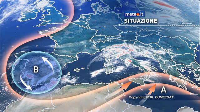 Il campo di alta pressione presente sull'Italia e che ha garantito un weekend prevalentemente di bel tempo, sta iniziando a indebolirsi, in particolare sul Mediterraneo occidentale dove già lunedì osserveremo l'embrione di una circolazione ciclonica destinata ad intensificarsi soprattutto nel corso della giornata successiva, martedì. L'effetto di questa depressione - affermano i meteorologi del Centro Epson Meteo - sarà un peggioramento del tempo, avvertibile specialmente dalla fine di martedì su Centrosud e Isole dove sarà attivo un vortice ciclonico, ed un generale rinforzo dei venti. Al Sud, in particolare, gli intensi venti meridionali convoglieranno a inizio settimana masse d'aria molto miti con temperature localmente oltre i 25 gradi".